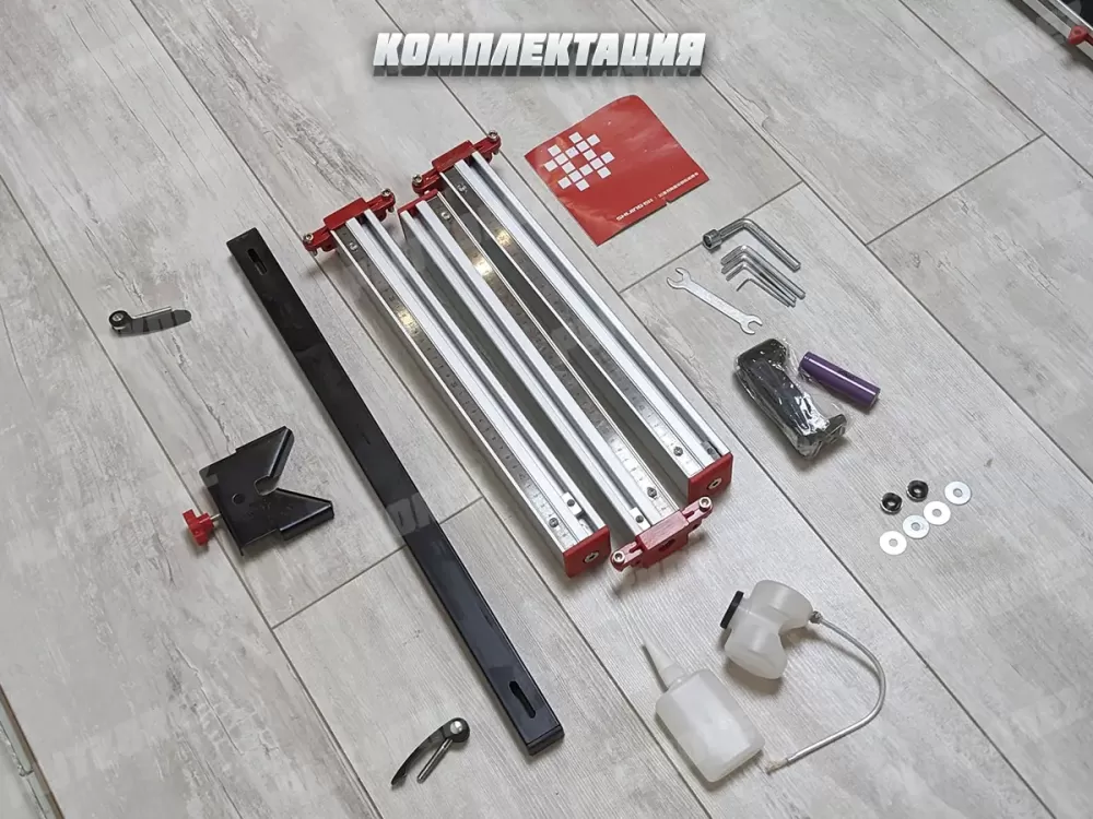 - Длина реза: максимальная длина реза до 870 мм (подойдет для реза плитки: 80 см, 60 см а так же для диагонального реза плитки 60 х 60 см, и более мелкие варианты);