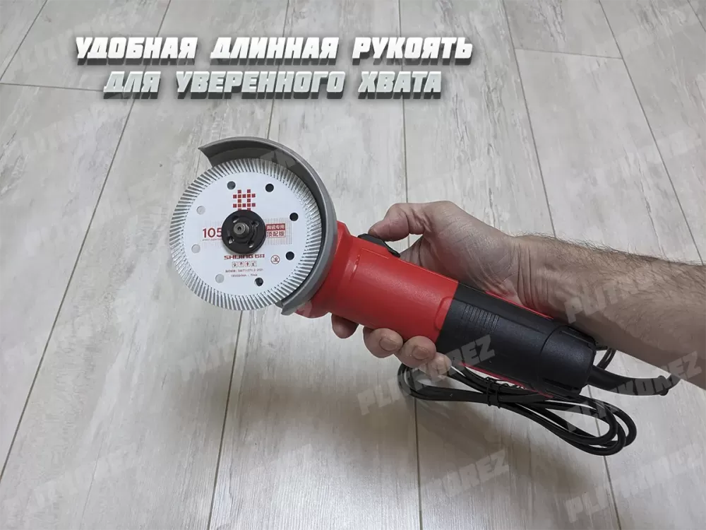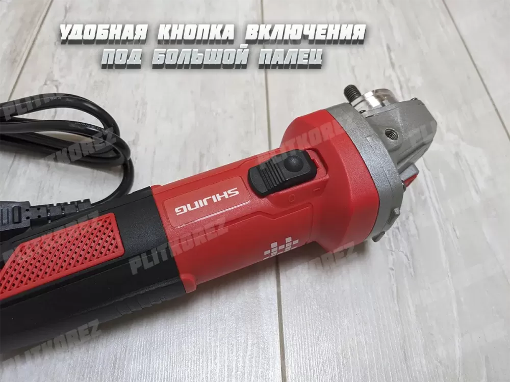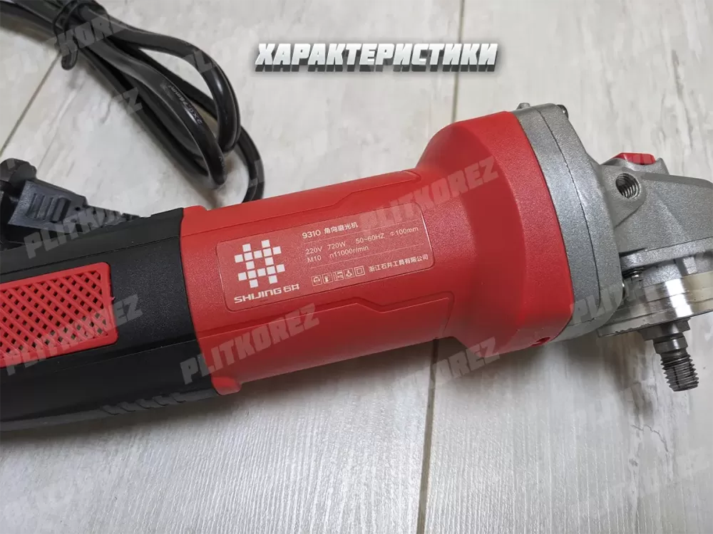 Болгарка Shijing 9310. Компактная, легкая, довольно мощная и оборотистая угловая шлифовальная машинка от китайского завода производителя номер 1, специализирующегося на оборудовании для обработки плитки (плиткорезы, присоски и прочие инструменты). Если вы уже знакомы с брендом Shijing, то Вы знаете, компания делает высококачественные инструменты. Данная угловая шлифмашинка не исключение из правил. УШМ Shijing 9310 весит около 1,3 кг, имеет вытянутый и довольно узкий корпус (обхват 18 см), благодаря этому прекрасно ложится в маленькую и большую кисть, имеет удобную кнопку включения сбоку прямо под большой палец, достаточно длинный и хорошо прорезиненный кабель два метра с защитой от перегиба и перелома на выходе, с хорошим достаточным сечением, реальные 2 х 0.75 мм2 (как и у Bosch, Metabo, Hikoki, DeWalt именитых производителей), честная заявленная мощность - 720 В, и высокие обороты 11 000 об/мин. Редуктор выполнен из алюминия, а значит хорошо отводит тепло и позволяет продолжительно время работать не останавливаясь. Из особенностей можно отметить отсутствие регулировки оборотов и защиты от повторного включения, а так же возможность работы с китайским стандартом дисков.