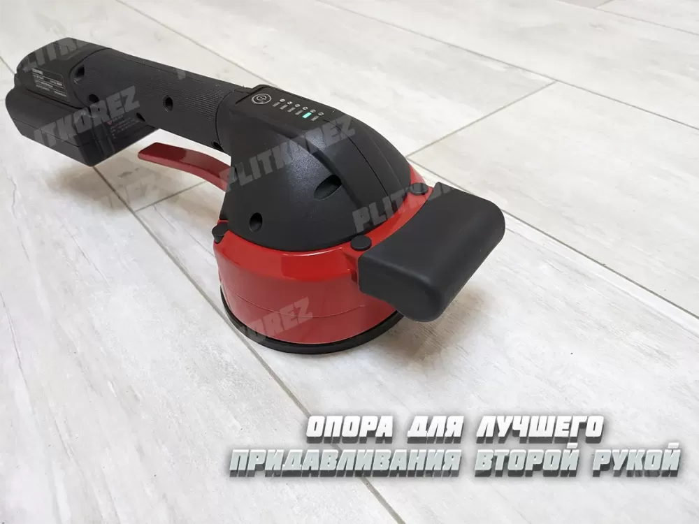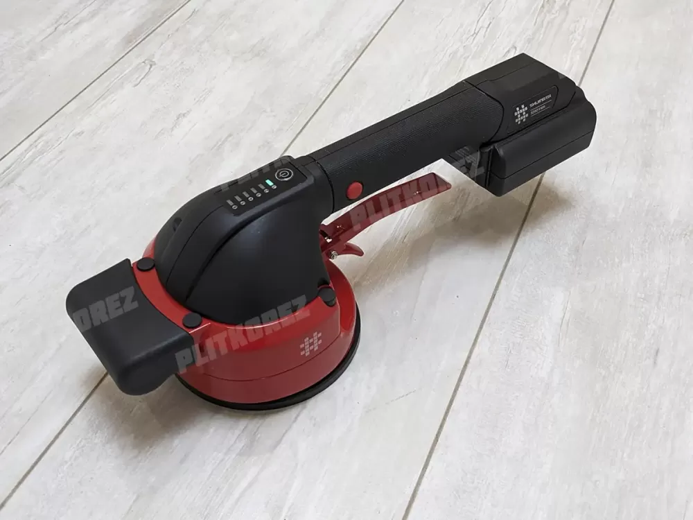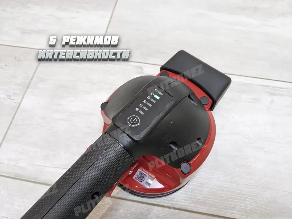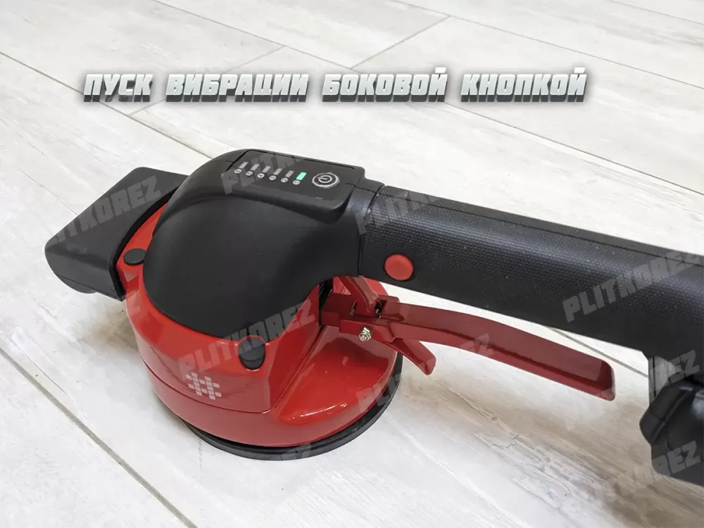 - Принцип работы: Создание вибрации которая помогает утапливать плитку в плиточный клей, вторая функция - присоска, для транспортировки, либо коррекции при укладке;